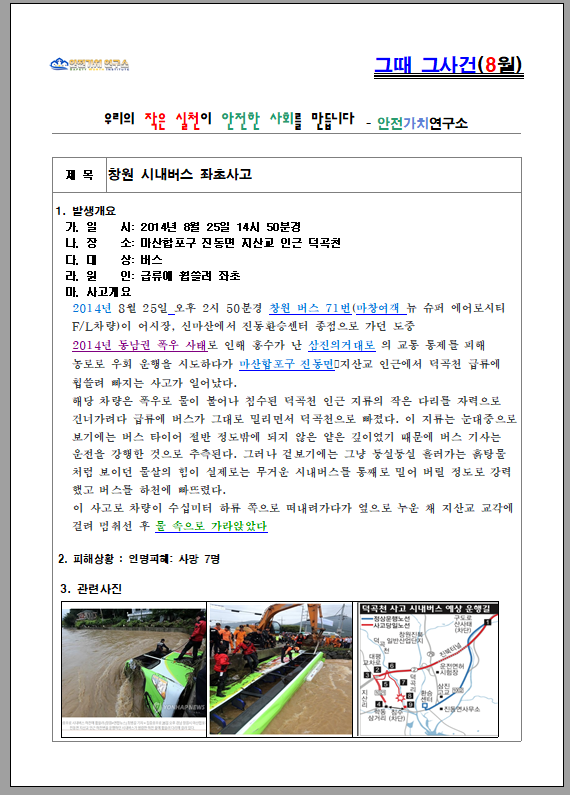 - 본 페이지는 창원 시내버스 좌초 사고를 다루고 있으며, 2014년 동남권 폭우 사태로 인해 버스가 침수된 사고이다.